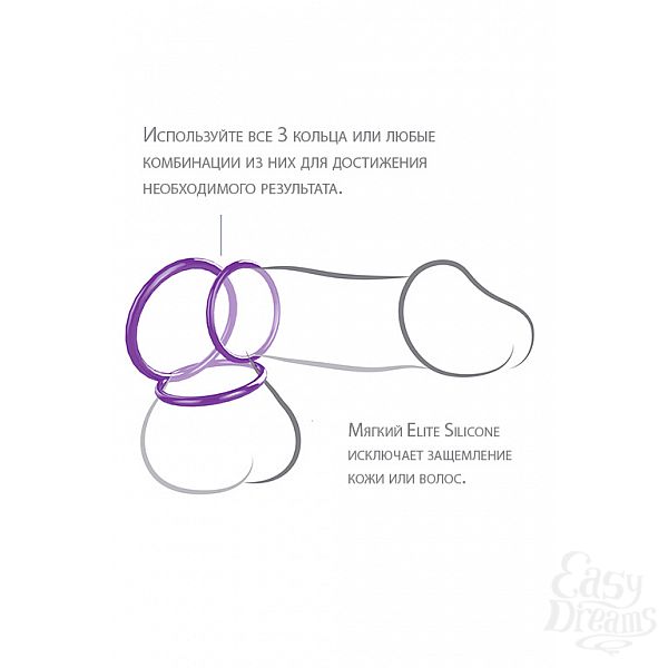 Секс шоп » Насадки / Кольца » Без вибрации » Набор из 3-х эрекционных колец Silicone 3-Ring Stamina Set фиолетовые