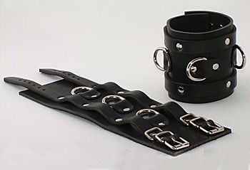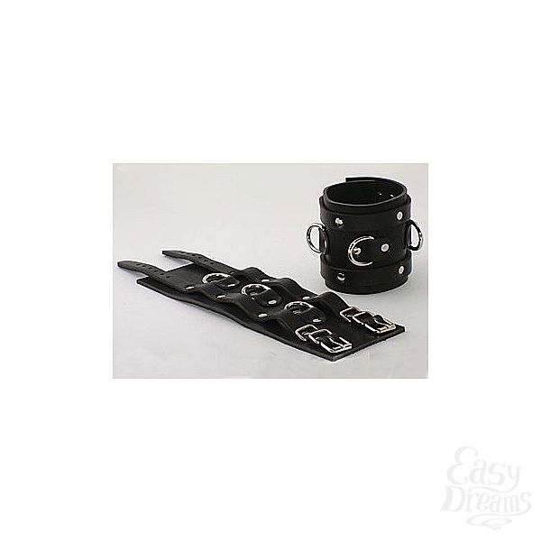 Секс шоп » БДСМ / Фетиш » Наручники / Фиксация » Наручники » Чёрные не подшитые широкие наручник с 3 D-кольцами