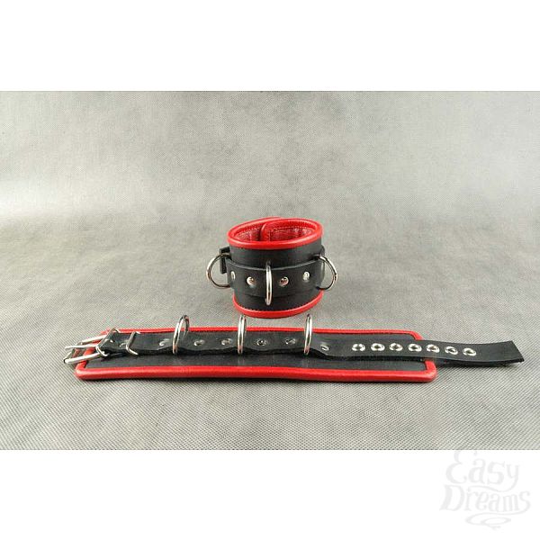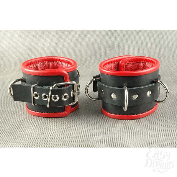 Секс шоп » БДСМ / Фетиш » Наручники / Фиксация » Наручники » Чёрные обернутые наручники с 3 сварными D-кольцами и красным подкладом