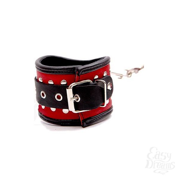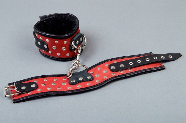 Секс шоп » БДСМ / Фетиш » Наручники / Фиксация » Наручники » Фигурные красно-чёрные наручники с клёпками