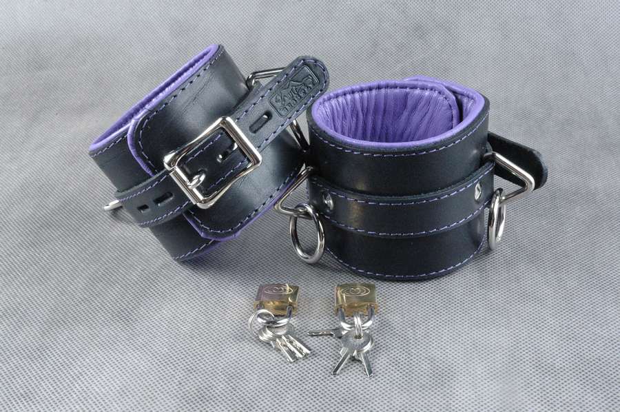 Секс шоп » БДСМ / Фетиш » Наручники / Фиксация » Наручники » Кожаные подвёрнутые наручники с фиолетовой подкладкой