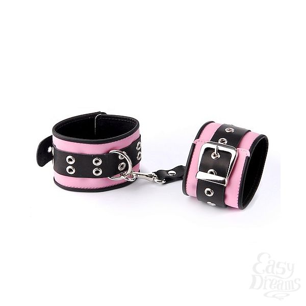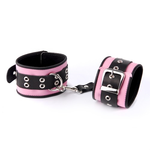 Секс шоп » БДСМ / Фетиш » Наручники / Фиксация » Наручники » Наручники кожаные черные с розовым, ремешок с двумя карабинами на концах 3052-14