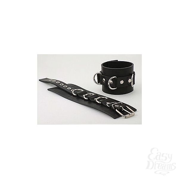 Секс шоп » БДСМ / Фетиш » Наручники / Фиксация » Наручники » Не подшитые чёрные наручник из кожи с пряжкой и 3 сварными D-кольцами
