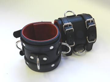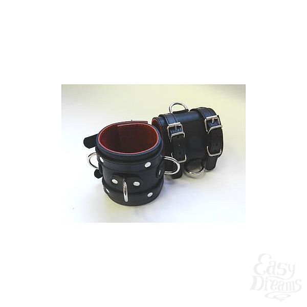 Секс шоп » БДСМ / Фетиш » Наручники / Фиксация » Наручники » Широкие подшитые наручники с 2 ремешками, 3 D-кольцами и красной изнанкой