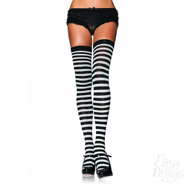 Секс шоп » Эротическое белье » Эротическое белье (большие размеры) » Полосатые чулочки Leg Avenue, размер XXL, XXL, Черный