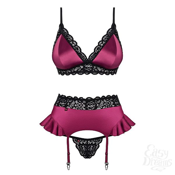 Секс шоп » Эротическое белье » Комплекты с трусиками » Яркий комплект из 3 предметов с отделкой кружевом