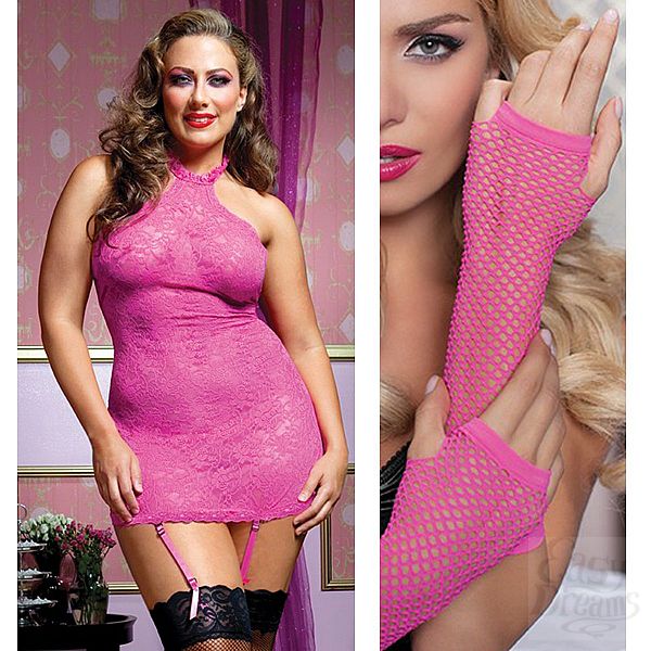 Секс шоп » Эротическое белье » Комплекты с трусиками » Smart Set 38: эффектное платье с пажами, трусики-стринги и перчатки из сетки
