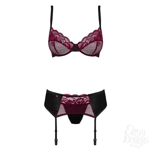 Секс шоп » Эротическое белье » Комплекты с трусиками » Восхитительный комплект из 3 предметов с малиновым кружевом