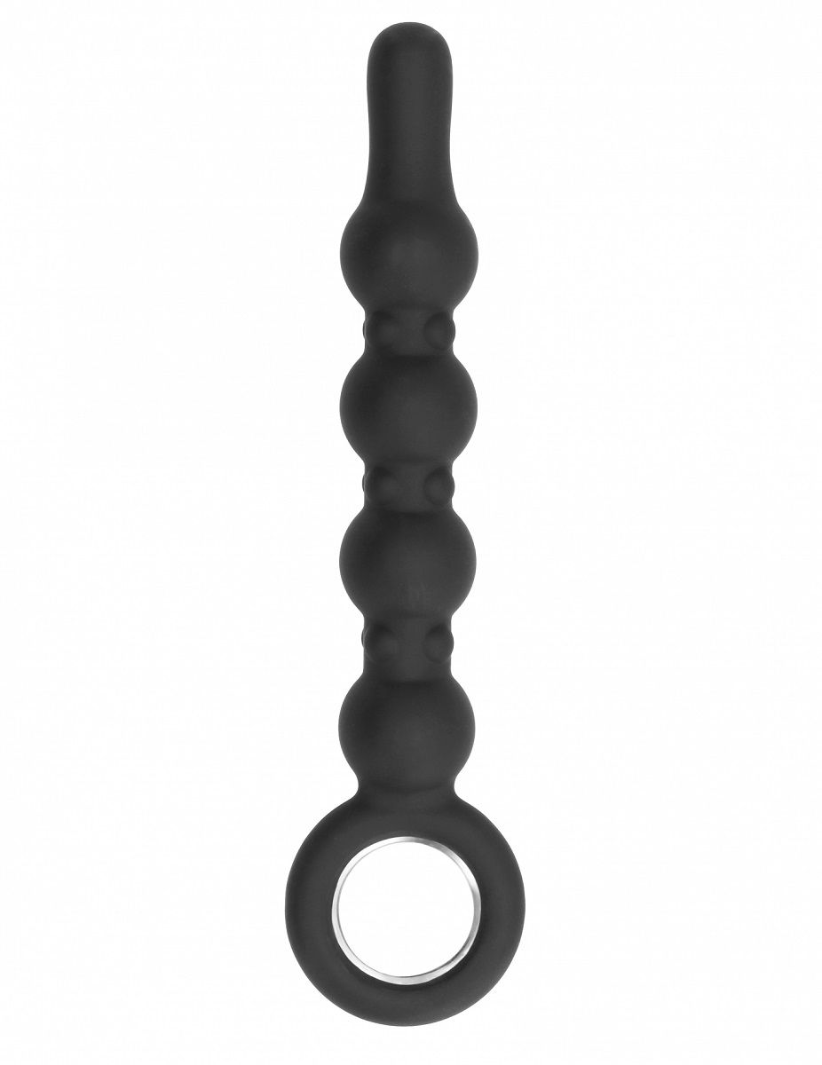 Секс шоп » Анальные игрушки » Шарики, Цепочки, Бусы » Чёрный анальный стимулятор No.59 Dildo With Metal Ring - 22,5 см.