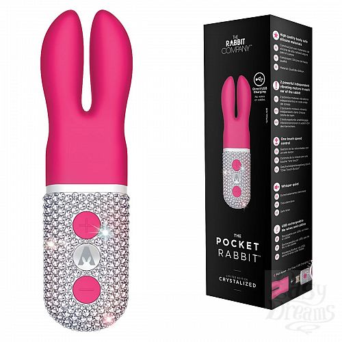 Секс шоп » Вибраторы » На клитор » Стимуляторы клитора без ремешков » Розовый вибратор с ушками The Pocket Rabbit, украшенный кристаллами