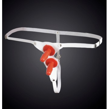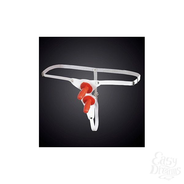 Секс шоп » Страпон » Трусики для страпона » Трусики кожаные, универсальные, с двумя штырьками для насадок, Белый